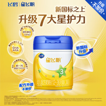 飞鹤始建于1962年,从丹顶鹤故乡黑龙江齐齐哈尔起步,是中国最早的奶粉企业之一,同时也是国内第一个建立起完整奶粉全产业链的乳企,旗下拥有星飞帆、超级飞帆-臻爱倍护、臻稚有机等系列产品,星飞帆奶粉是比较畅销的系列,很多宝爸宝妈选择奶粉首要关注的就是奶源,星飞帆的奶源来自北纬47°黄金奶源带:扎龙湿地,这里日照充沛,牧草资源丰富,是确保奶源品质的重要条件。星飞帆用新鲜生牛乳(鲜奶)制作,挤奶到加工2小时,保证了奶粉的新鲜营养,天然含有OPO,适合宝宝娇嫩肠胃吸收,更适合中国宝宝体质,此外,星飞帆对重要营养素也进行革命性“升级”,益生元GOS升级,低聚果糖FOS升级为低聚半乳糖GOS,促进肠道益生菌增殖,调节微生态平衡,提升肠道保护力。