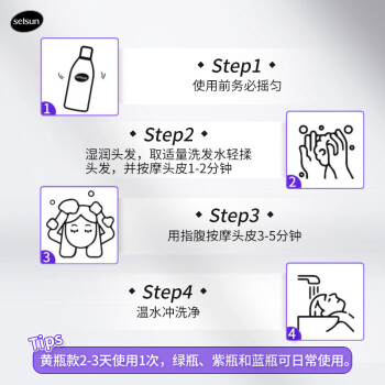 紫瓶控油去屑款含有1%硫化硒,能解决头皮屑问题,强效去屑,从源头抑制头屑产生。此款为0硅油洗发水,不伤头皮,舒缓泛红刺激。紫瓶洗发水不仅去屑,还能舒缓止痒、去屑控油、改善头皮环境,修护头皮健康。头皮健康才能减少头屑脱落,不会痒、红肿。Selsun洗发水含有特效去屑成分,使用前务必摇匀。