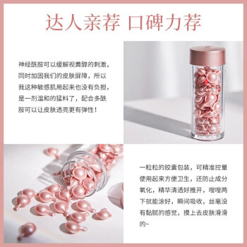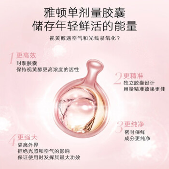 这款小粉胶是雅顿18年推出的新品,采用独立密封粉色胶囊设计,主打视黄醇+神经酰胺,视黄醇帮助淡化皱纹,令肌肤重现年轻水润光彩,神经酰胺帮助加强肌肤保湿屏障,减少视黄醇对肌肤的刺激,同时也能提高视黄醇的稳定性,即使是敏感肌肤也适合使用。温和配方持续收缩毛孔,平滑肤质,减少细纹与皱纹的同时,令肌肤更加通透及紧致。密闭胶囊设计令成分更纯净,避免外界污染和氧化,单粒剂量使用量更精准,啫喱质地也能保持更高浓度的活性。