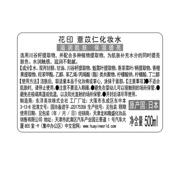 这款HANAJIRUSHI 花印 薏仁水爽肤水,含有高浓度薏仁素,可改善肌肤暗沉,提亮肤色。结合多糖和维B,可使肌肤深透润泽。此外,还添加有香橙果、魁蒿叶、香茶菜等植物成分,深层滋养,使肌肤细腻水润。规格:500ml。