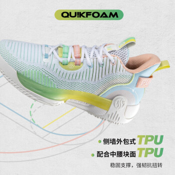 361° AG凌空MOD 572211102 男款篮球鞋,大底采用QU!KFOAM材质,柔韧轻弹,充沛缓震,助力起跳,占领制空权;鞋面定制针织材料,根据人体工学排布纹理,柔软贴合,舒适透气;可调节幅度更大,MORPHIT鞋带系统,提升包裹,增强稳定;外底大面耐磨橡胶,易磨损处额外补强纹路,提升抓地性能,启动更快速。