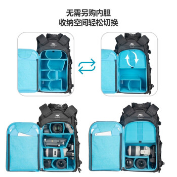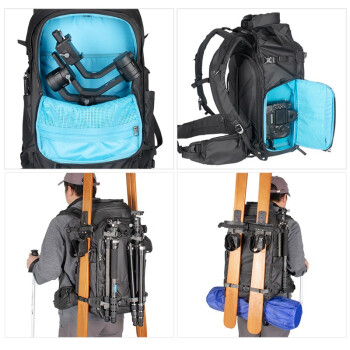 该摄影包适合户外探险摄影的发烧友,外尺寸(cm)为(53x29x20),重量为2.35kg,容量达到了30L。该摄影包配备了轻型铝合金U型支撑骨架,舒适减压。