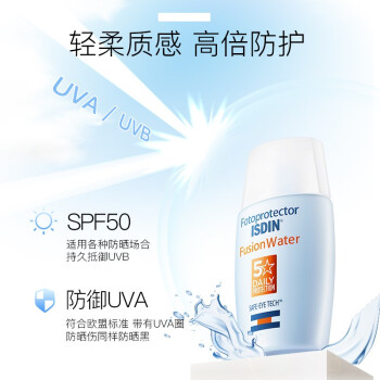 1975年,奢侈品集团PUIG与百年制药世家ESTEVE联合创立ISDIN,以医药学的标准,严格生产护肤品。 这款多维光护沁融水感防晒液,含有透明质酸和维生素E,水水润润,后续上妆无压力。SPF高达50+,可以迅速成膜,全天保护。无油配方,一抹化水,不搓泥不泛白。无泪配方不熏眼,敏感肌也可以安心使用。在暴露在阳光下的前30分钟使用本品。