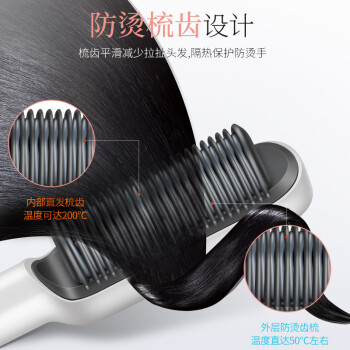 金稻这款直发梳采用PTC发热技术,快速加热后自动恒温,降低因温度忽冷忽热而造成头发损伤。防烫梳齿设计,减少拉扯头发,隔热保护防烫手。智能温控,130℃-200℃五档可调,适用于不同发质。直卷两用,可垂顺直发,亦可内扣外翻。