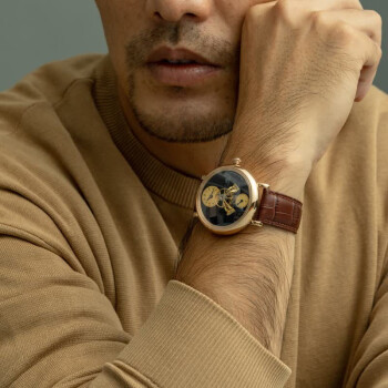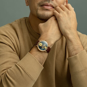 此款产品为SHANGHAI 上海牌手表 穹镜系列 男士自动机械表 865,透底表背,四角锁底,透底表背,日内瓦纹与拉丝纹理相得益彰,镂空摆铊让表背之美祖露无遗。浓墨中彩锋芒破势,穹镜系列灿若星辰。以游丝摆轮组件为中心,遵循庄重有序的对称之美,将小时盘与小秒盘和谐排列于表盘之上,和谐井然。
