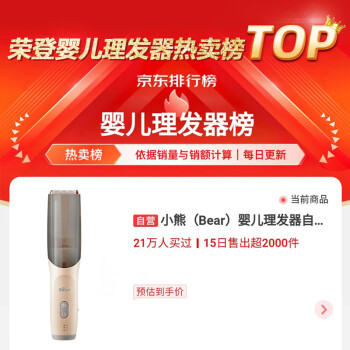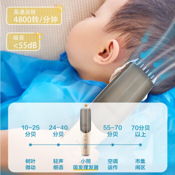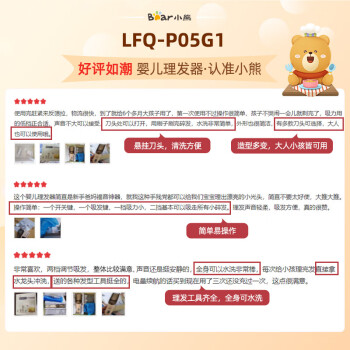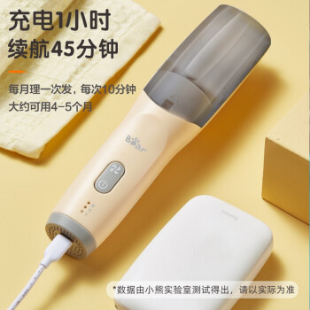小熊母婴致力于研发让爸妈轻松育儿,宝宝健康成长的母婴产品,涵盖以宝宝喂养为核心的电器与用品,把“高颜值”与“高品质”相结合,提供贴心的品牌服务。本款理发器双马达设计,可以边理边吸,解决满地碎发、刺眼扎脖等困扰,两档吸发,软硬发质适用,大容量蓄发仓,一吸到底。高速低噪,不惊扰宝宝,圆润刀头,呵护娇嫩头皮,IPX6防水,全身可水洗,1小时快充,续航45分钟,