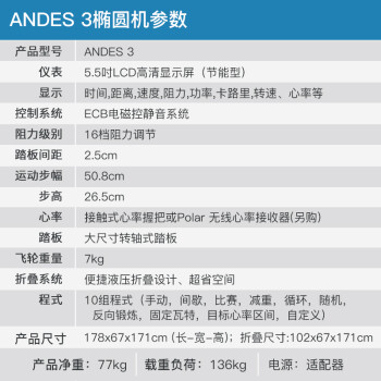 JOHNSON 乔山 ANDES 3 家用可折叠太空漫步机,采用前置飞轮设计,于是提供了更大更舒适的运动步幅,无顿挫感,主关节承设计,运行更顺畅静音搭配多连杆式运行系统,带来更流畅稳定的体验。