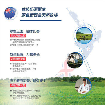 卡洛塔妮(karihome)这款配方羊奶粉,为新西兰原装进口;含有全羊乳蛋白,易于消化吸收。还富含多种营养成分,其中Sn-2棕榈酸,可促进营养消化吸收,改善骨骼矿物质的密度和降低便秘几率;核苷酸和肌醇,能维持并增强免疫系统,增加抗体,促进生长发育,增进食欲。