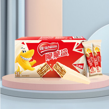 雀巢脆脆鲨牛奶味巧克力威化,由进口乳粉、美味香滑的雀巢巧克力,包裹着松脆的威化夹层而成,零反式脂肪,酥脆香甜。