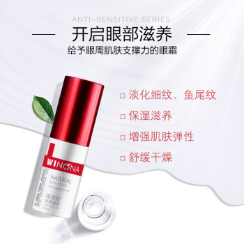 这款WINONA 薇诺娜 紧致眼霜,具有舒缓刺激,改善敏感;渗透润泽,保湿锁水;紧致眼周,提升弹性;修护滋养,改善暗沉四大功效,有效对抗眼部肌肤问题。富含马齿苋、紫松果菊、滇山茶、纳豆、活性肽五大精萃,层层呵护眼部肌肤;缓解肌肤不适,减轻刺激;淡化细纹皱纹,均匀肤色;阻抑胶原酶、弹性蛋白酶的降解作用,保持肌肤弹性;紧致提升,细嫩眼周肌肤。
