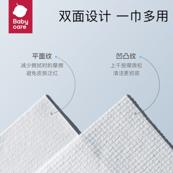 加厚加柔水刺无纺布,厚度再提升50%,湿水后秒变小毛巾,手感厚柔,清洁力更强。蓬松纤维打造柔软手感,即便是宝宝的娇嫩PP,擦拭后仍然柔软如初不泛红,40mm超长纤维,耐撕耐用,湿水揉搓,不掉絮可放心循环使用。贴心双面纹路设计,凹凸纹清洁力更彻底,平纹面柔软不伤肤,满足不同使用需求。