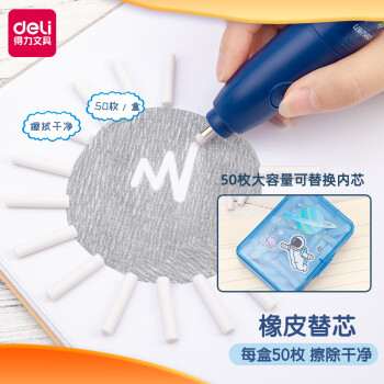 电动橡皮擦精准擦除,省时高效,打破传统电动擦除更干净,拥有得力品质用心设计,细节更到位;电动擦除不易留痕,精巧怜俐更便携。