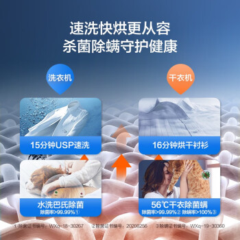 搭配升级热泵系统,56℃快速干衣又护衣,内筒简正反转科技,360°自由舒展少缠绕,烘干更均匀。通过新风循环,带走衣物纤维深处的异味分子,可轻松去除火锅、 烟酒等异味,无需水洗,时刻清新亮丽。烘干结束后,自动进入1小时防皱程序,间歇性抖散衣物, 防止堆积时间过长产生褶皱。洗衣机一体式触控屏,操控流畅顺滑。新创环瀑水流,通过控制水流强度和姿态的变化,形成五重立体水流, 洁净柔护兼备。智能预约,深夜洗衣无需久等。洗衣途中发现漏洗衣物,可随时按下暂停键添加,无需重新洗涤。内筒采用熔融连接技术,连接处光滑平整 提升强度和平整度,耐用更护衣。