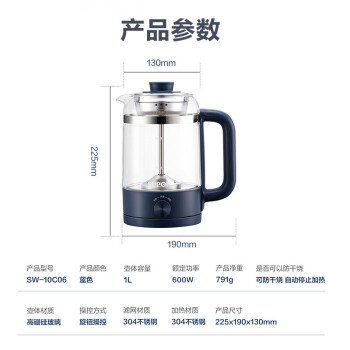 SUPOR 苏泊尔 SW-10C06 家用煮茶器高温蒸汽喷淋,茶汤分离,手动,自动双模式,食品级高硼硅玻璃,耐冷热不易破裂,600W大功率速热,食品级健康材质,安心呵护每一滴茶汤,食品无异味茶汤入口无忧虑,全分离底座,舒适手柄肆意倒取,磨砂质感蒸煮倒取不烫手,大品牌值得信赖。