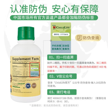 ChildLife Essentials公司旗下的ChildLife是2000年创立于美国的儿童营养品品牌,其产品纯天然提取,有机工艺,营养丰富。这款钙镁锌补充液为超强吸收的柠檬酸钙、镁配方,加入维生素D,帮助钙吸收,口感极佳,更易吸收,均衡营养。Child Life婴幼儿钙镁锌液体钙16盎司474ml,这款把补充钙、锌和D3,每天很多补充剂四种元素都集中到了一起,补钙和吸收更放心了。Child Life是由美国著名儿科医师Dr.Murray Clarke博士研制而出,这款钙镁锌酸酸甜甜的,跟酸奶一样的质地,宝宝喜爱不再抗拒,轻轻松松补钙。