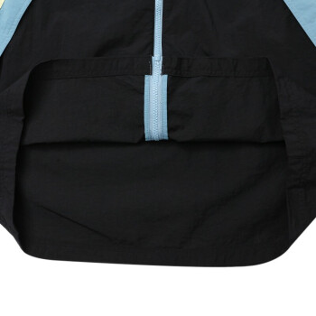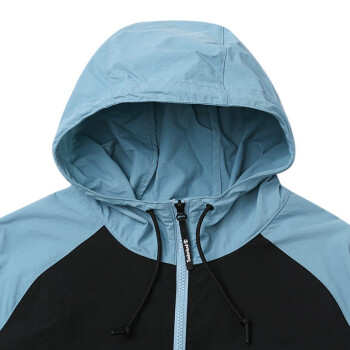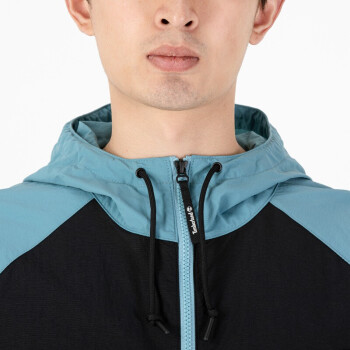 撞色拼接尼龙面料,颜色自然,拥有出色的透气性。连帽抽绳设计,可随意调节。胸口明显的LOGO标贴,简洁大方。衣袖撞色图案印花,弹性袖口,休闲随意。