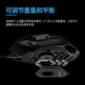 新款的G502增加了新命名“主宰”,也是这款经典的游戏鼠标所经历的第三次升级。2018款G502主宰所使用的传感器由原先的Delta Zero升级为Hero 16K(MX518 2018同款传感器),最高DPI升级至16000(400IPS加速度),同时左右按键点击寿命也升级至5000万次,想必另玩家吐槽的上一代无极滚轮在此处也能迎来品控的升级。G502主宰配置了11个可编程按键,板载内存可存储3组配置。保留了双模式疾速滚轮的设定,侧面双按键,附加一枚G Shift 低DPI切换键。底部可自定义安装5个3.6克配重块,相对合理的位置避免了头重脚轻的现象,也能帮助江湖虾米或武林高手找到合适自己的手感。配合罗技官方软件,可支持罗技Lightsync灯光同步系统,与其它罗技外设一同闪耀。鼠标三围132*75*40mm,单鼠标重量121克,武林高手必选。