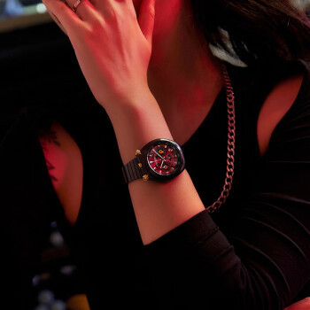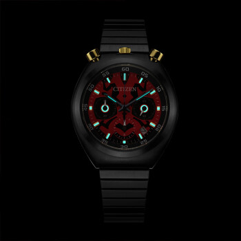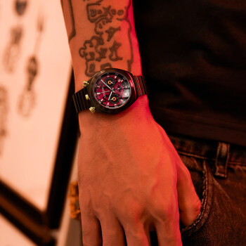 达斯·摩尔AN3668-55W腕表同样采用了黑色作为主色调,不同的是表冠采用了金色演绎,呼应达斯·摩尔的金瞳。表盘完全风格化呈现了达斯·摩尔的面部图腾,红黑色的纹理与金色的小表盘组合,仿佛达斯·摩尔的强大而危险的凝视,极具视觉冲击力。该款腕表全球限量发售400枚。
