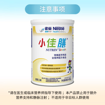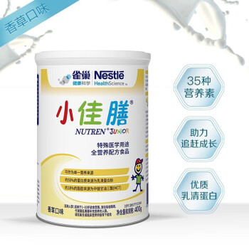 Nestlé 雀巢公司总部位于瑞士的雀巢集团,是世界上最大的食品公司。此款小佳膳全营养配方粉带热卡配方,提供宝宝充足能量。含中链甘油3酯,快速吸收,添加益生元配方,呵护宝宝肠道健康。含有35种营养素,提供全面营养。含优质乳清蛋白和酪蛋白,更亲和配方。规格400g。