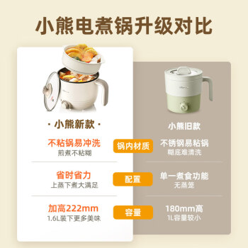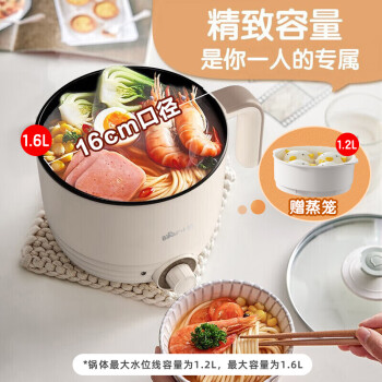 Bear 小熊 DRG-E12L3 多用途锅 白色 上蒸下煮,一份时间双份美味,优质不粘涂层,一抹即净易清洗,两档火力,食材口感随心控,断电保护,无需时刻盯宁,优质不粘涂层,煎煮不粘糊,一冲一洗就干净。