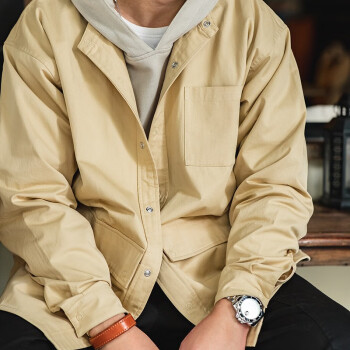 MADEN 马登 男士衬衫外套 TLW2201864 采用棉籽壳斜纹面料,保留自然复古,干净清爽的立领,适合多季节穿搭,2个大口袋翻盖贴袋,是它的功能属性,落肩款式,显得更放松。