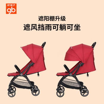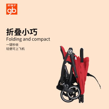 Goodbaby好孩子是国内最知名的母婴品牌,产品大量出口欧美发达国家。这款童车脚踏和靠背和舒适调节,一按一扣,快速折叠。小巧轻便,可带上飞机,整车净重5.9kg。一体成型技术,双圆弧形造型,弹力面料遮阳篷,透气网眼设计。
