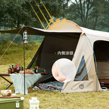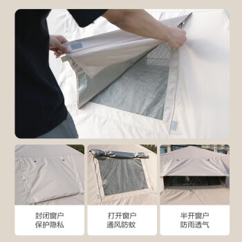 京东京造 户外隧道帐篷 一室两厅 JZZP-06 四面大纱窗通风透气,享受全景观的同时杜绝闷热,为家庭出游带来凉爽的防晒体验,高密度纱窗可以有效隔绝蚊虫侵扰,透气且减少闷热,保证户外出游舒适度。隧道帐身设计,门厅、前厅、卧室三重空间,睡眠、休闲互不打扰,尽享舒适家庭露营。安全感客厅,遮风挡雨,私密安全,白天可做私密性客厅,夜晚可增设床位,侧边增设拉链门,通风无忧,进出更方便。