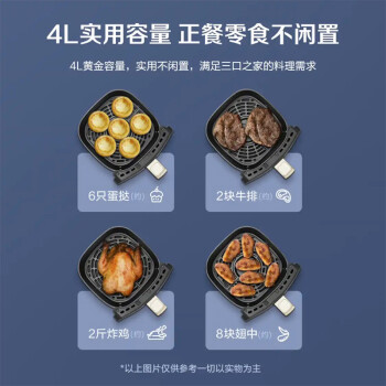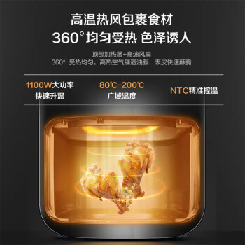 耐高温玻璃可视窗,随时查看食材烹饪状态方便调时调温、加湿翻面,焦嫩口感全程掌握。烘炸食品的灵魂在于皮脆肉嫩,那么你需要给食材补点水,机器自带水箱,自动加湿,拒绝食物过干过柴。80℃-200℃ 高温热风,8大烹饪选项,1100W大功率,4L实用容量。