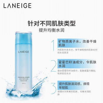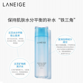 LANEIGE 兰芝是韩国最大的化妆品公司爱茉莉太平洋旗下的品牌,创立于1994年,上市以来备受消费者喜爱。这款水库滋润爽肤水 200ml加入活化纳米矿泉水,强化三重深层补水系统,为肌肤深入补水,强化肤质透明护理效果。拥有丰富的蛋白质和植物养分,活化肌肤细胞,提亮肤色,令肌肤晶莹透亮。轻柔的呵护肌肤,安抚角质,使其更加细腻光滑,使用感轻盈舒爽。