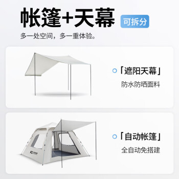 ZIYOUKE 自由客 天幕帐篷二合一,延伸大天幕,加大遮阳面。免安装搭建,自动3S速开。1.9m加高加粗天幕杆,站起不顶头,坚固更耐用。多种搭建形态:自动帐篷、遮阳天幕、天幕帐篷一体。