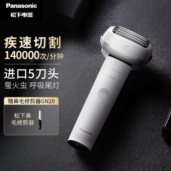 Panasonic 松下 小锤子Pro ES-LM51-W405 电动剃须刀,日本进口多维3D浮动五刀头,全面刃深剃刀头,深度截断胡须根部。松下迄今为止最高切割数,每分钟14万次切割,磁悬浮直驱马达。萤火虫呼吸尾灯,剃须力度根据胡须浓密程度自动调节。带鬓角修剪器,IPX7级防水,Type-C充电口,一小时快充,抗指纹机身,软皮质感收纳包。