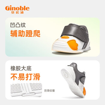 Ginoble 基诺浦 宝宝学步鞋 灰色/白色/橘红色,蹬爬更有力,平衡重心不易摔倒,每一步更稳,行走不易崴脚,轻薄透气,脚丫畅快呼吸。