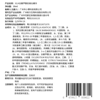 934护肤品也被称为943/九又四分之三,该品牌是新兴美容国货品牌,堪称是“国货之光”。934的消费群体主要集中在年轻人,特别是大学生。这款白藜芦醇抗氧化精华露,主打抵抗氧化损伤,提升肌肤质感,添加了修护明星成分依克多因,有效保护细胞,抵抗环境和疲劳导致的肌肤损伤,白藜芦醇与VC乙基醚、肌肽联合对抗氧化损伤,清除多余自由基,保护蛋白质弹性,防止氧化衰老。配方中还添加了积雪草提取物和库拉索芦荟提取物,舒缓疲劳和损伤产生的红敏、刺痛,加速损伤修护,红茶酵母发酵产物提供丰富的微量元素,协助调理肌肤状态,三肽-1、五肽-3和乙酰基六肽-8提供紧致提拉的功效,角鲨烷、透明质酸、糖类同分异构体、野大豆油提取物等高效保湿成分提供长效的水分供给,为疲劳、熬夜后的肌肤带来快速的恢复与质感提升。