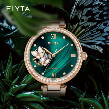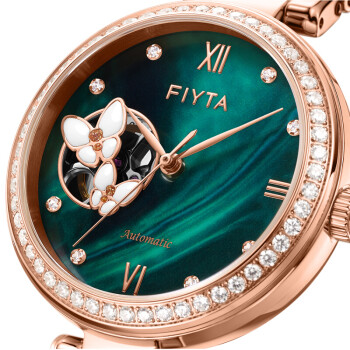 飞亚达(FIYTA)推出的这款34.5毫米腕表,搭载自动机械机芯,走时稳定。具有50米防水性能,可满足日常防水需求。采用人工合成蓝宝石玻璃表镜,耐磨损且通透性好,读时清晰。表盘以两只蝴蝶点缀,配有点形钻石时标、三大针,典雅精美。