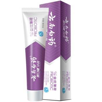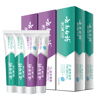 YUNNANBAIYAO 云南白药益生菌健康牙膏套装,内含激爽薄荷105g+薄荷清爽型105g,这款云南白药牙膏含有特有的药物活性成分,能促进牙龈血液循环,长期使用可以防止牙龈出血,预防牙周炎、牙龈萎缩等口腔疾病。