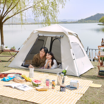 J.ZAO 京东京造 JZZP01 全自动防水帐篷,采用新型上拉式轻型伞头,轻轻一拉,立即打开帐篷,轻轻一按,快速收起,侧面大面积纱窗结构,透气防蚊,通透不闷。防UV涂层、双重防晒,防晒指数达到UPF30+,将近4.5平米空间,可容纳多人在帐内活动。