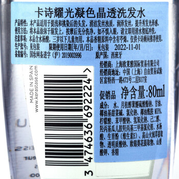 Kerastase卡诗是欧莱雅集团旗下高端的美发品牌,定位与价格一直比较高。此款耀光凝色晶透洗发水为“水光洗发水”,蕴含两大明星成分——玻尿酸精华,能够帮助修护染烫后的发丝纤维;雪绒花精粹,富含抗氧化物质,帮助呵护染烫后的发丝纤维。能够修护外层毛鳞片,提高头发光泽度,并补充保湿成分,令头发呈现水润触感。适用于受损发质。