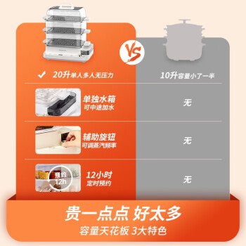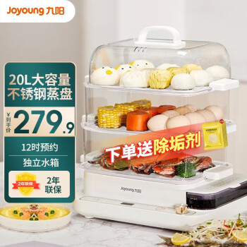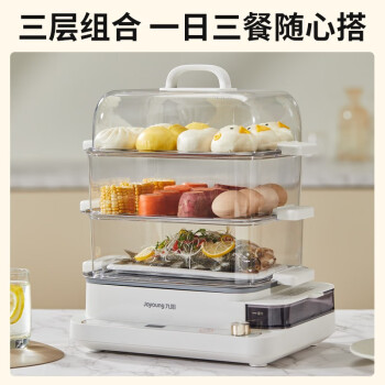 Joyoung 九阳 DZ180HG-GZ568 电蒸锅 20L 白色 不锈钢蒸片款 20L三层大容量,全家聚餐无压力,超大“肚量”,承包丰盛家宴,亲朋欢聚开启美味派对,双环结构快出蒸汽,900W速热锁鲜蒸。