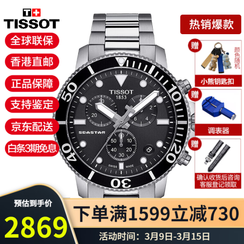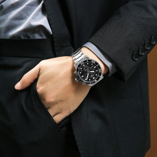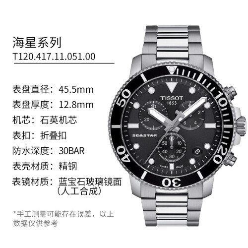 海星系列腕表具有长时间动力储蓄、夜光指针、30巴防水性能是水上运动爱好者的佳选,无论日常佩戴或是参加派对都别具风格。蓝色表盘、圆点刻度,方便清晰读时,不锈钢表壳,流畅线形设计、造型感十足,ETA G10.212机芯,表盘直径45.5mm,厚度12.82mm。人造蓝宝石水晶玻璃镜面耐磨蚀抗刮伤,其莫氏硬度等级高达10,仅次于钻石、金刚石;采用瑞典优质石英机芯,细腻的不锈钢底盖,表背印有品牌信息,细节之处可见匠心雕琢。