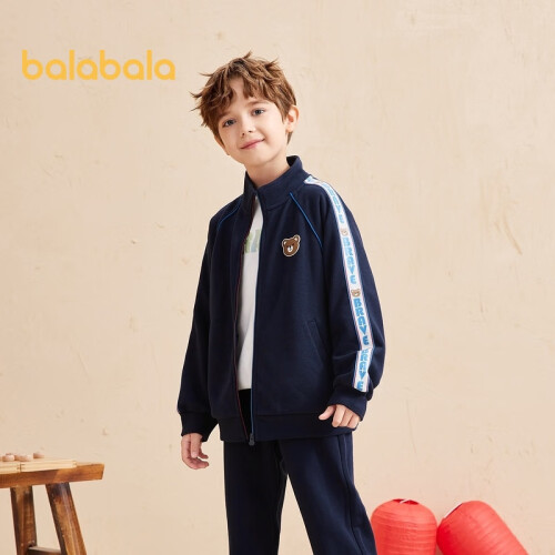 balabala 巴拉巴拉 男童两件套,袖口收紧,防风保暖。萌趣印章,可爱有趣。更厚更便穿,自在舒适。侧边织带,增添时尚。