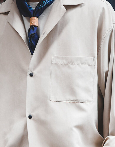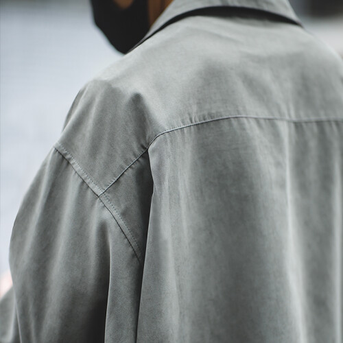 面料上叔用了超细的涤锦聚酯,经过磨绒处理后,表面产生了约0.2mm的短绒,领口上复古布唛的英文,可译为舒适的高品质生活,干净利落的剪裁和落肩的处理,好穿且不挑人,胸前口袋的设计方便放置小物品,每个人穿古巴领衬衫都可以穿出不同的风格,日式街头风、美式休闲风…颜色上叔准备了浅绿和浅卡其,两个都是不错的选择。