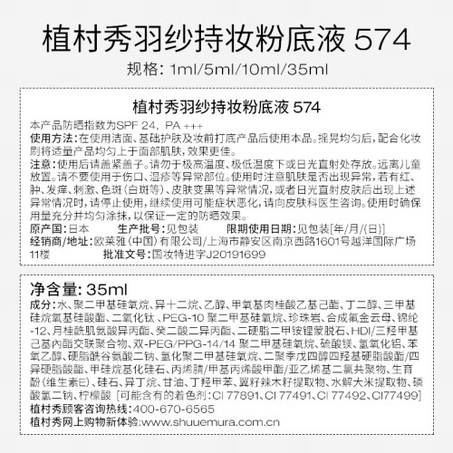 植村秀是日本著名化妆品集团,创始人shu uemura算得上是日本男士在彩妆保养第一人,被称为“洁颜油之父”。其彩妆线产品也很丰富,其明星产品包括绿茶洁颜油,毛孔柔焦CC泡隔,砍刀眉笔等。植村秀推出新品小方瓶羽纱持妆粉底液。一次上新了24个色号,可以分5大色系,色号组中,第一个数字代表色调:3冷色调,4中冷调(新增的亚洲色调),5中性调,6中暖调(新增的亚洲色调),7暖色调;第二个数字代表明亮度,数字越大代表色号越白、越暖。