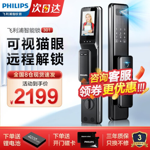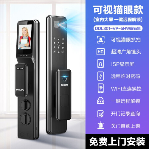 电子猫眼与智能锁的结合,无需二次安装,带来可视化的安全防护。3.5英寸1PS高清彩屏,一目了然看清访客容貌,特别适合家中不会使用智能手机的老人,儿童,并且支持wifi断网情况下使用远程猫眼查看室外情况。猫眼内置在钢化玻璃内,长久保护猫眼镜头,不易刮擦磨损,时间久了画面依旧清晰明亮。访客按门铃,猫眼自动抓拍保存图片,并上传至手机微信小程序, 您在查看小程序日志消息并确认访客信息后,一键远程解锁, 无惧距离限制,访客轻松进门。解锁后,电机带动锁芯转动,锁柱自动收回 无需下压把手即可进门。可设置定时自动上锁,出门只需随手一拉,时间一到自动上锁, 无需再担心会忘记锁门。