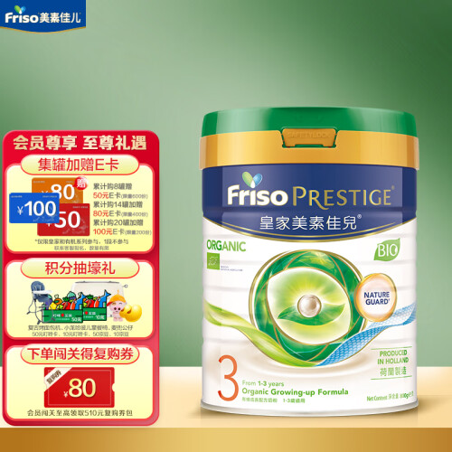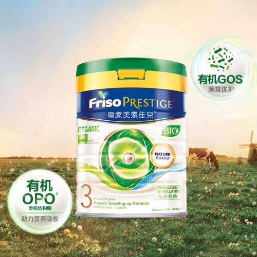 Friso 美素佳儿 港版皇家有机版 成长配方奶粉 3段 800g/罐,源于荷兰多元生态自家农场:丰沃有机草原与丰富多样生物,共同构建荷兰自家农场多元生态系统,符合欧盟有机标准。皇家美素佳儿有机蕴含珍贵的有机第一层奶源精华,接近源乳,并完美保留有机珍稀营养,包括来自机牛奶中的天然OPO,脂肪酸,及乳磷脂,分子结构天然,有助肠道健康,支持宝宝全方位健康发展。TrackEasy奶源追溯系统,可追溯产品由荷兰自家农场、生产过程以及抵港资讯的系统,全程追踪,全然安心。新客购买一罐即送 100 元优惠券
