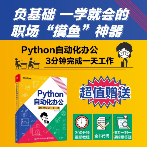 本书理论知识精练、代码简单、思路清晰、学习资源齐备,适合有一定办公软件使用基础又想进一步提高工作效率的办公人员,如从事行政、人事、营销、财务等职业的人士阅读,也可供Python编程爱好者参考。