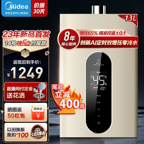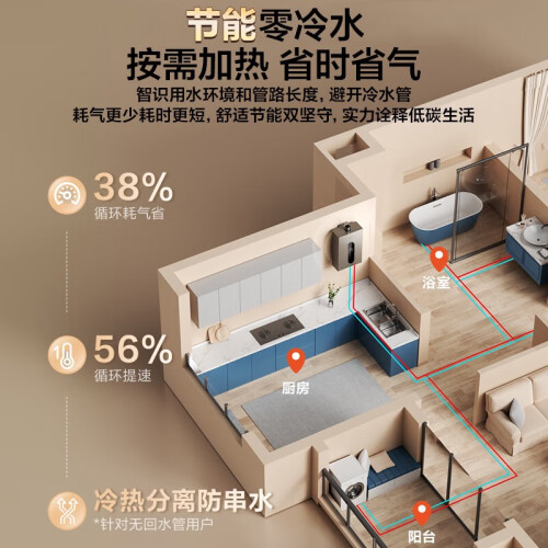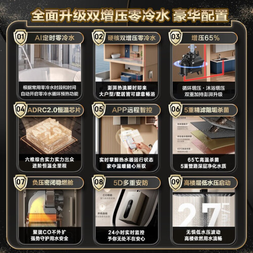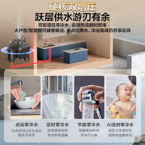 美的零冷水燃气热水器,创新AI定时双增压零冷水,增压65%尽享澎湃水流畅快沐浴,会根据常用零冷水时段和时间,自动开启零冷水循环预热功能,无需手动定时,减少重复繁杂的操作,全新密闭稳燃舱,紧缩CO不外溢,搭载APS实测风压抽氧助燃,燃烧更安全稳定,全时用水暖意不减。
