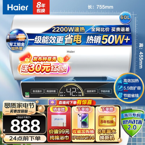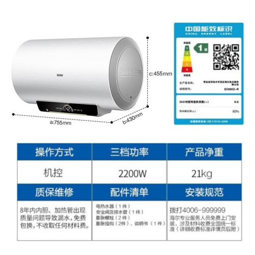 当前的位置: 首页 > 今日值得买 > 海尔(Haier)电热水器电家用储水式小型速热节能一级能效卫生间洗澡防电墙R【安心浴】 经典版60升-EC6002-R