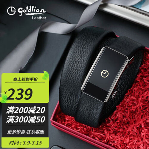 goldlion 金利来 男士头层牛皮腰带 FAY003292-711,头层牛皮,皮面细腻柔顺,扣头设计棱角分明,表面光滑简约。采用光滑镜面自动扣头,高亮电镀合金扣头边框,扣面平滑细腻,加入浮雕浅金色三点钟品牌标识点缀,体现优雅不凡的气质。茘枝纹头层牛皮,柔软的头层牛皮带身,经过摔打加工成茘枝纹路,清晰分明,优雅时尚,轻松为你造型加分。
