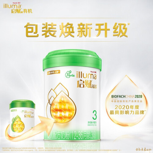 Wyeth 惠氏 是著名奶粉品牌,在婴幼儿营养品的研制和营销方面有着近百年历史。illuma启赋是惠氏旗下的高端奶粉,奶源全部来自爱尔兰,亲和人体配方,自然贴合宝宝每一步成长所需,帮助支持宝宝体格、骨骼、头脑、免疫和吸收五大成长原动力。3段奶粉适合1-3岁宝宝,满足宝宝成长所需营养。