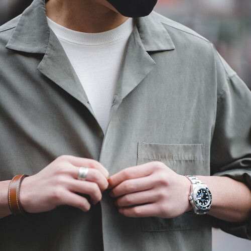 面料上用了超细的涤锦聚酯,经过磨绒处理后,表面产生了约0.2mm的短绒,领口上复古布唛的英文,可译为舒适的高品质生活,干净利落的剪裁和落肩的处理,好穿且不挑人,胸前口袋的设计方便放置小物品,每个人穿古巴领衬衫都可以穿出不同的风格,日式街头风、美式休闲风…颜色上准备了浅绿和浅卡其,两个都是不错的选择。